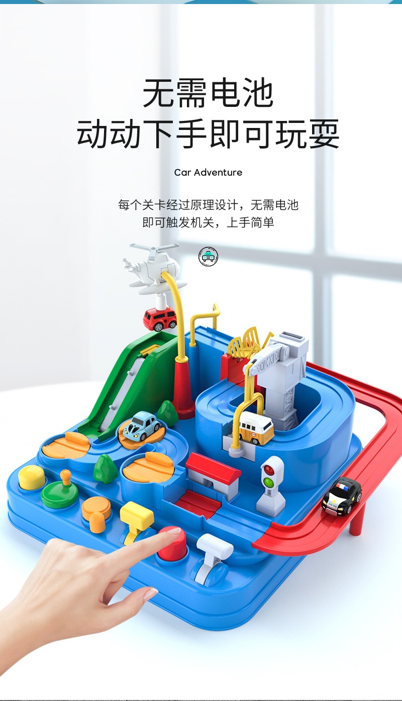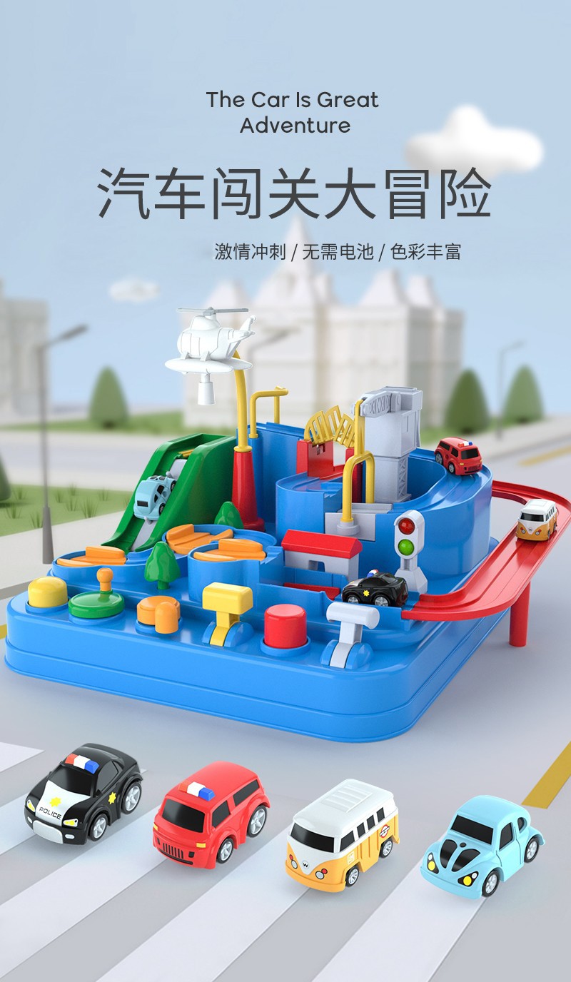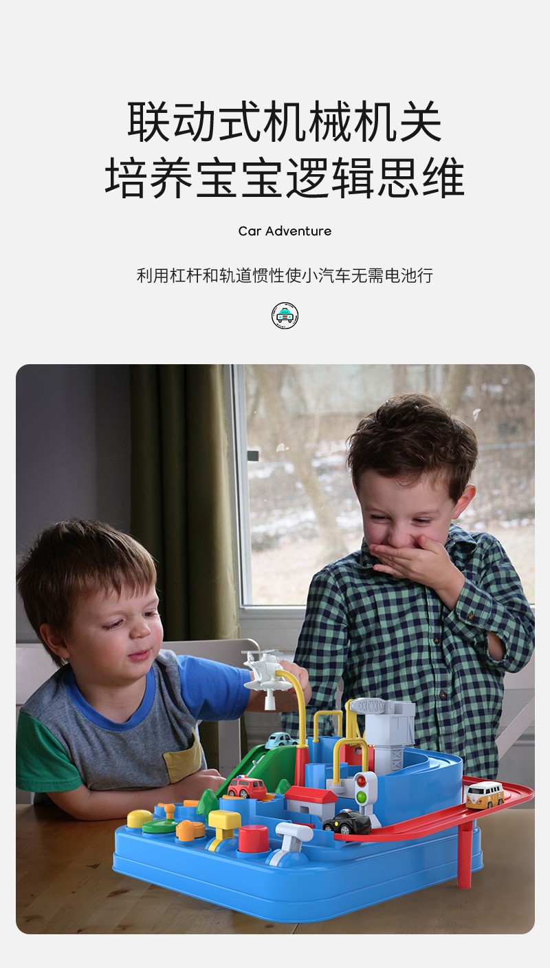 儿童玩具汽车大冒险闯关火车轨道套装桌面启智玩具男孩抖音同款创意停车场3-4-6岁生日礼物 大冒险【4辆小车,小车款式随机】