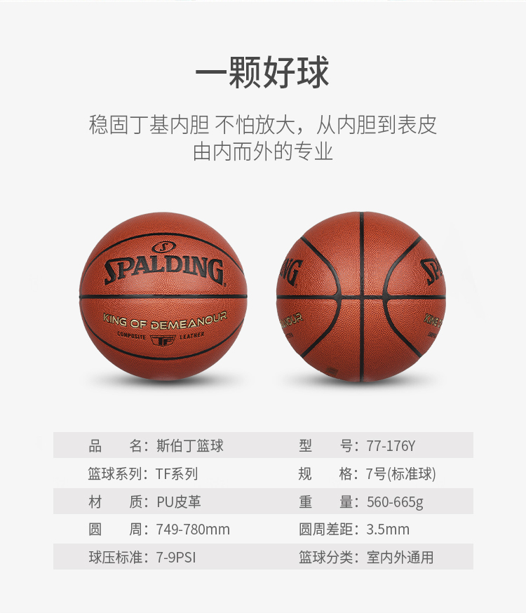 斯伯丁(SPALDING)篮球TF系列7号PU比赛室内外兼用耐磨 77-176Y