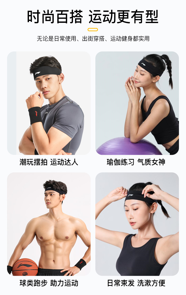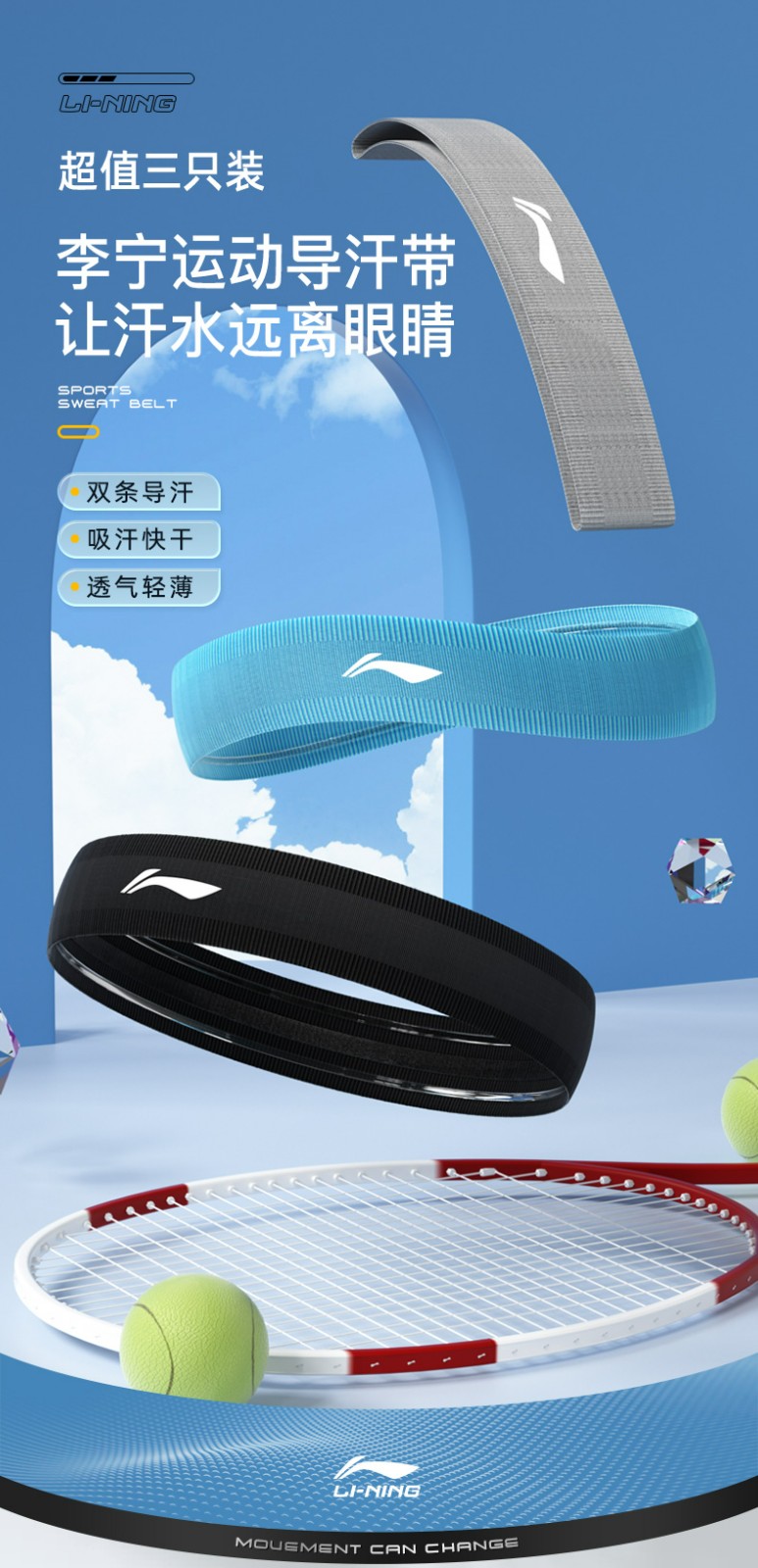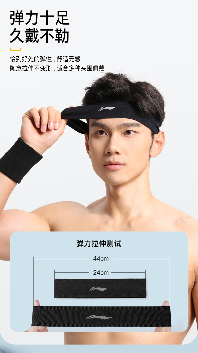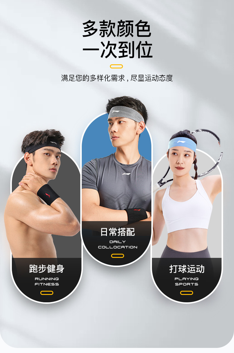 李宁【三只装】发带男运动头带吸汗女止汗带跑步导汗带头巾篮球防汗头带男女登山束发带健身运动头箍瑜伽护额