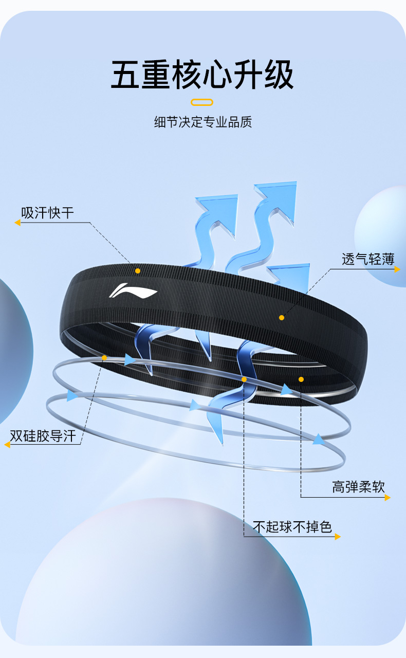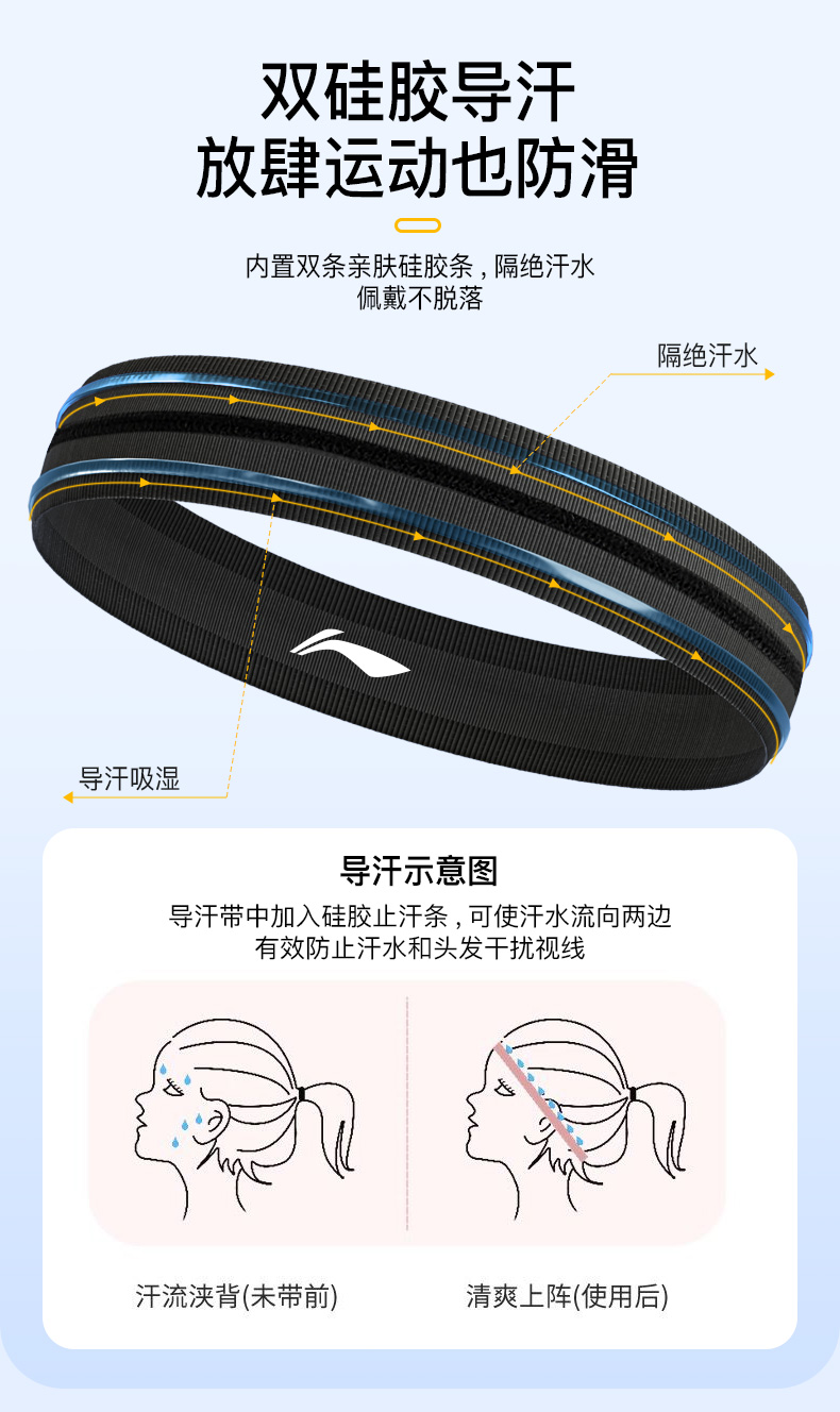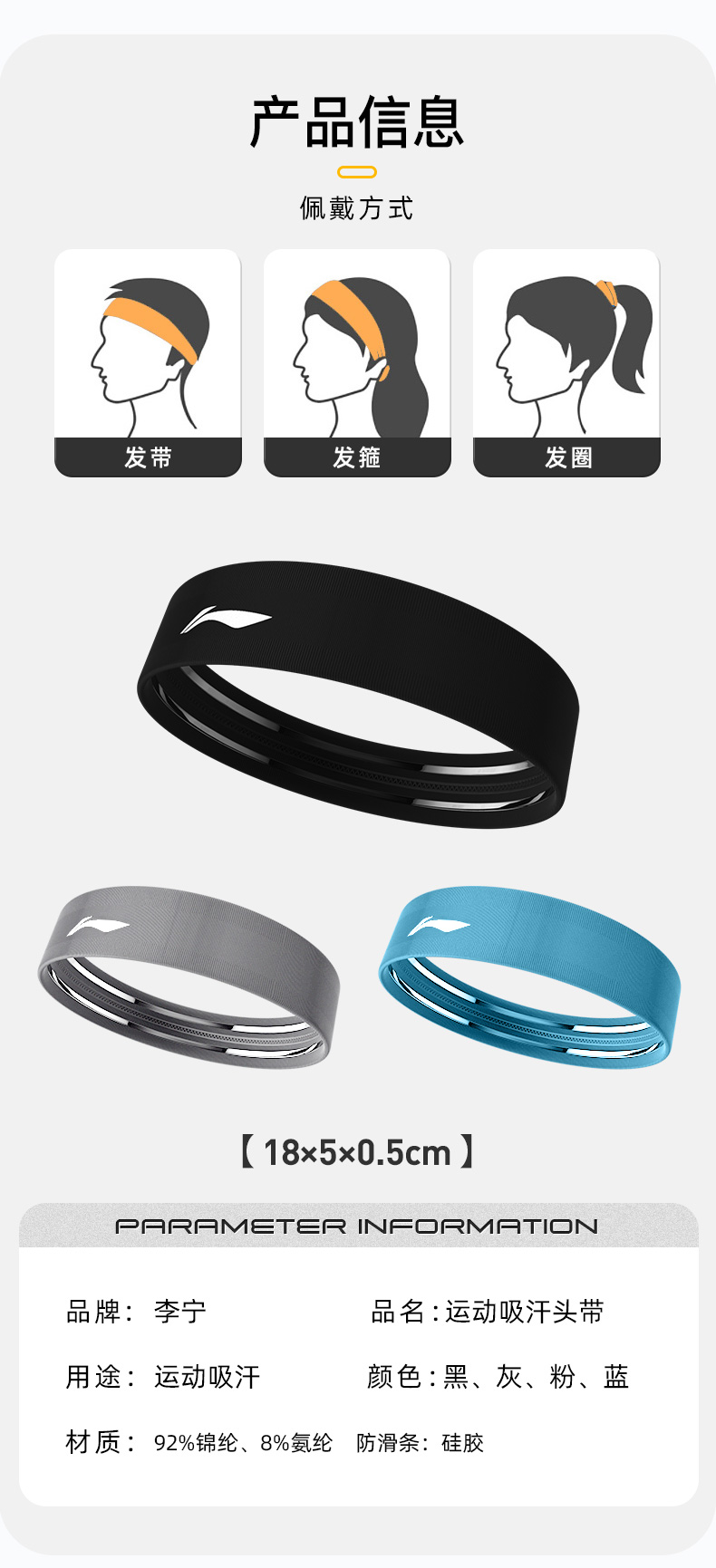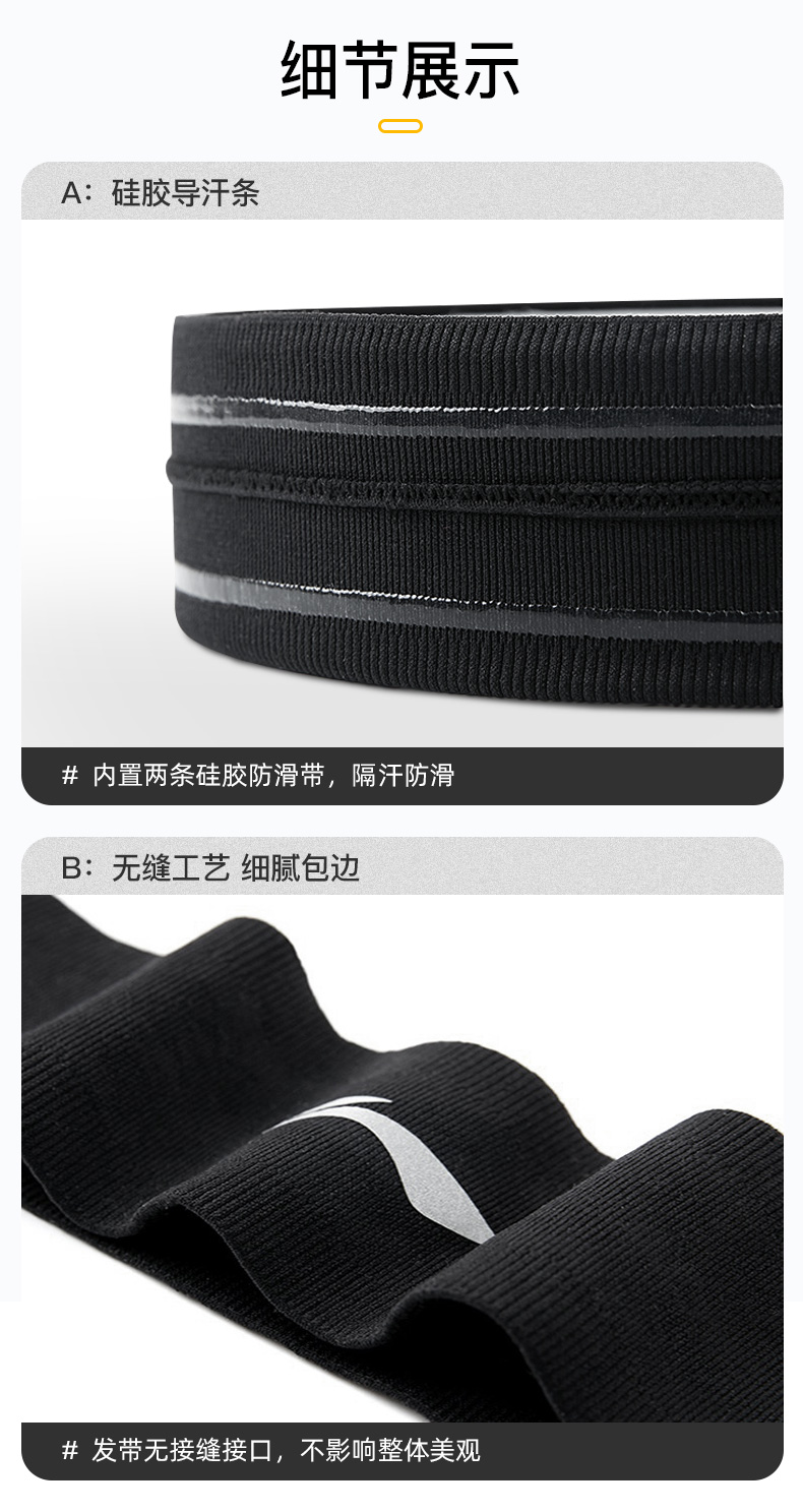 李宁【三只装】发带男运动头带吸汗女止汗带跑步导汗带头巾篮球防汗头带男女登山束发带健身运动头箍瑜伽护额