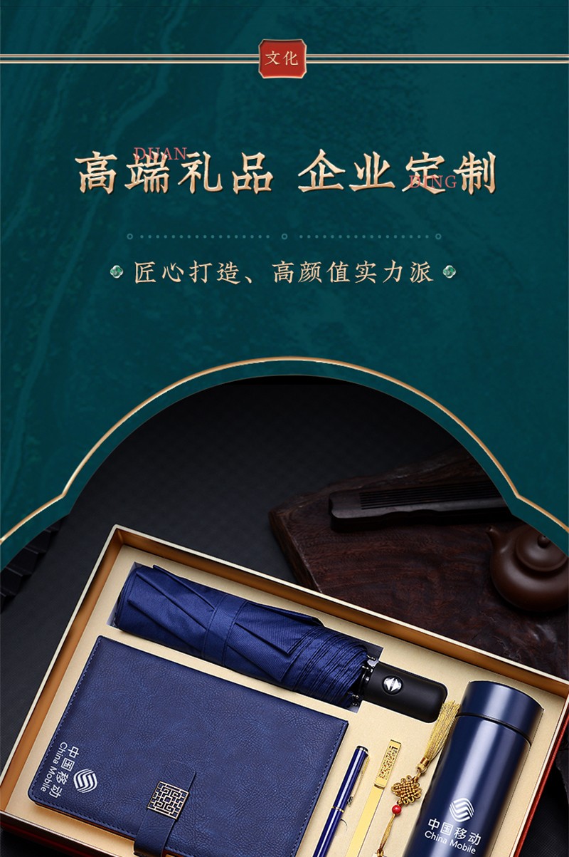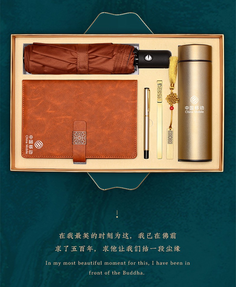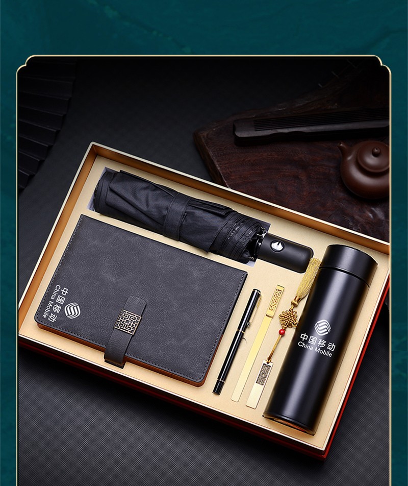 琦煜 企业公司年会商务礼品定制LOGO高档纪念品礼盒笔记本套装生日礼物伴手礼客户随手礼 黑-FK笔记本+签字笔+U盘+数显杯+雨伞+书签