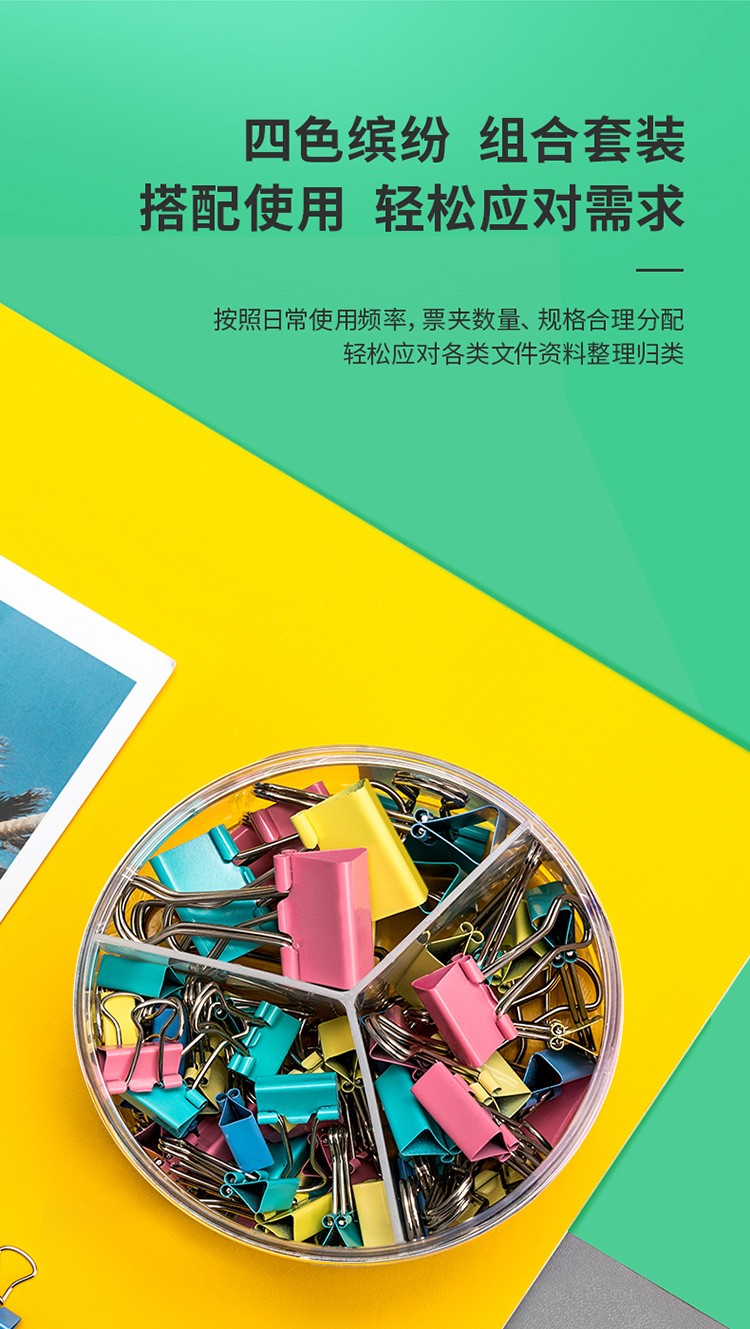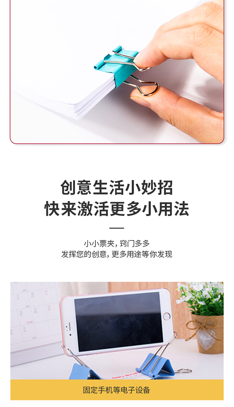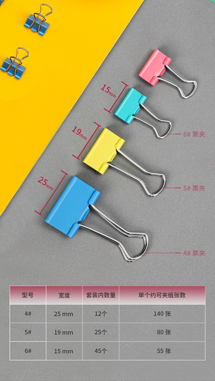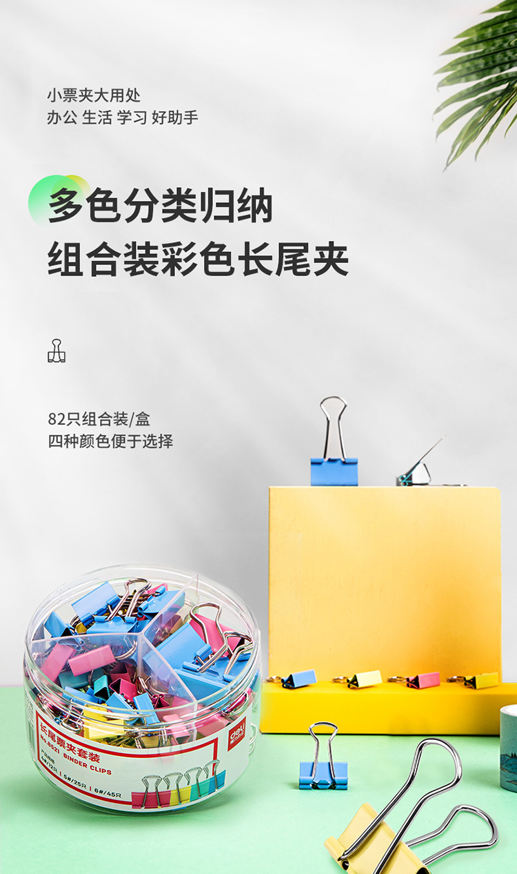 得力(deli)82只组合装彩色长尾夹/燕尾夹/票夹/文件夹(25mm*12只+19mm*25只+15mm*45只) 办公用品 8521